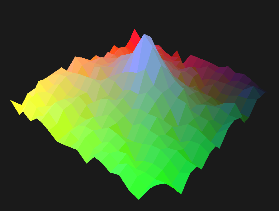 ![]() Polygon surface without texture map. Surface polygons are triangles with 3-D vertices specified in (latitude, longitude, elevation). |